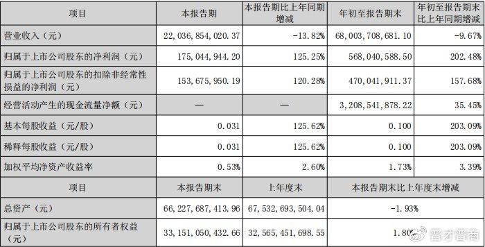 公司前三季度基本每股收益為0.1元,山西同比增長203.09%;經營活動產生的頭企頭股現金流量凈額達32.09億元,同比增長35.45% 特別值得注意的業山是,單個第三季度,公司實現歸母凈利潤1.75億元,同比增長125.25%,連續保持盈利向好態勢。