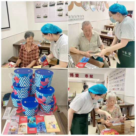三、戶外宣傳 ?。ㄒ唬╆P愛老年人聚焦銀發群體活動 2025年9月16日,德華安顧人壽青島分公司志愿者服務團隊來到位于青島市李滄區青峰路的日善堂素食餐廳,開展“保障金融權益 助力美好生活”金融教育宣傳活動。