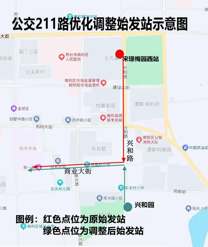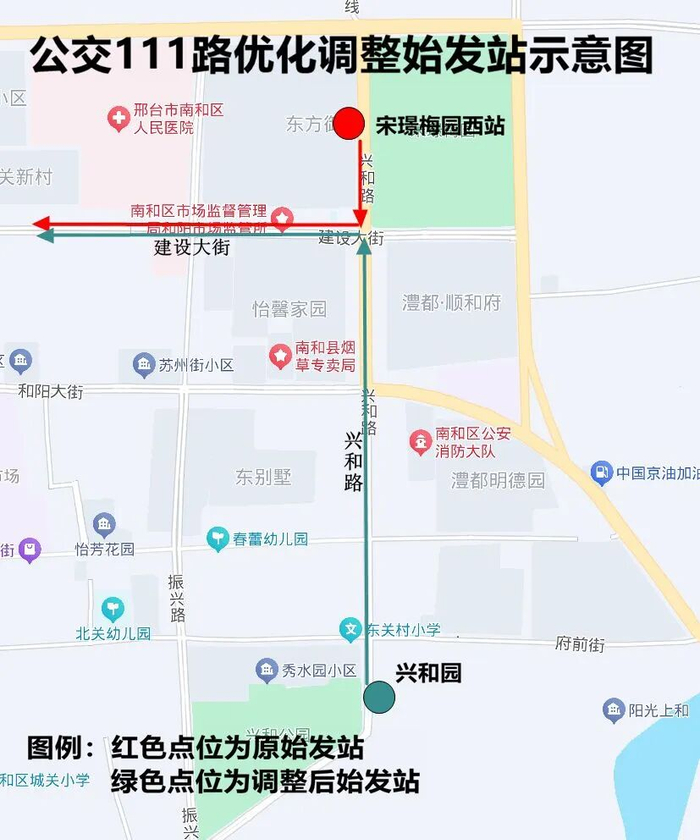 出行信息為進一步優化公交線網,候邢恢復方便南和區居民出行,臺公通自2025年11月1日起,交車公交111路、正常118路、邢臺211路始發站由宋璟梅園西站調整至興和園,公交具體情況如下:公交111路